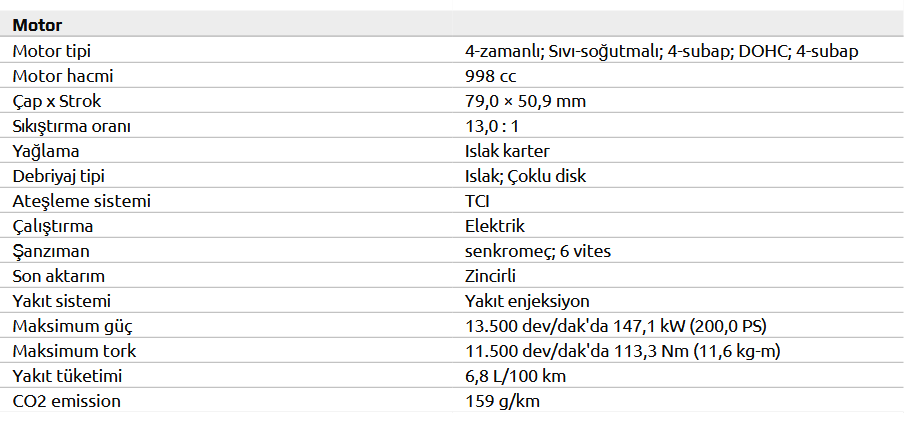 R1'in 4 silindirli 998 cc motorun önemli bir özelliği; güçlü, doğrusal tork sağlayan asimetrik 270°-180 -90°-180° ateşleme sırası olan crossplane (çapraz düzlem) teknolojisine sahip krank milidir. Özel olarak tasarlanmış takip makarası kollarıyla yüksek verimliliğe sahip bir hava giriş sistemi sunan yarış için geliştirilmiş bu motor, olağanüstü yüksek devir performansı sağlar.