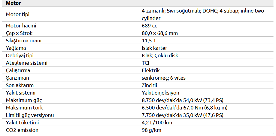 Yüksek torklu 689 cc CP2 motor
